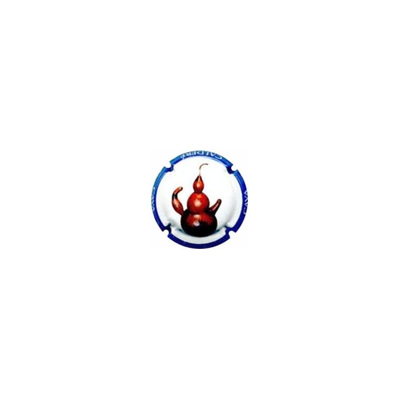 CPC:No catalogada Placa amb faldó blau i text, blanc. Contorn i centre, blanc i imatge multicolor. Càntir núm. 6.
